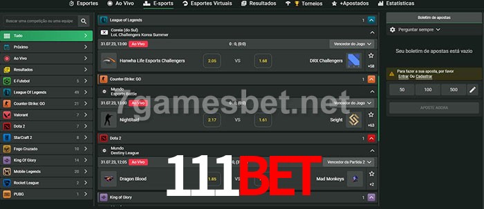 O 111bet oferece uma grande seleção de opções de apostas em e-sports com probabilidades competitivas